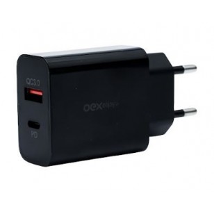 CARREGADOR 2 SAIDAS USB/TYPE C 20W P/TOMADA PRETO 48.7419 OEX CG206