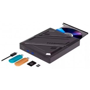 GRAVADOR USB EXTERNO DVD/CD-RW USB TIPO-C E NORMAL C/ LEITOR DE CARTÕES/2xSAIDAS USB 3.0 KNUP KP-HD840